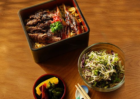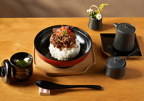 Thinly sliced stir-fried teriyaki beef and onions served over sesame & nori rice.